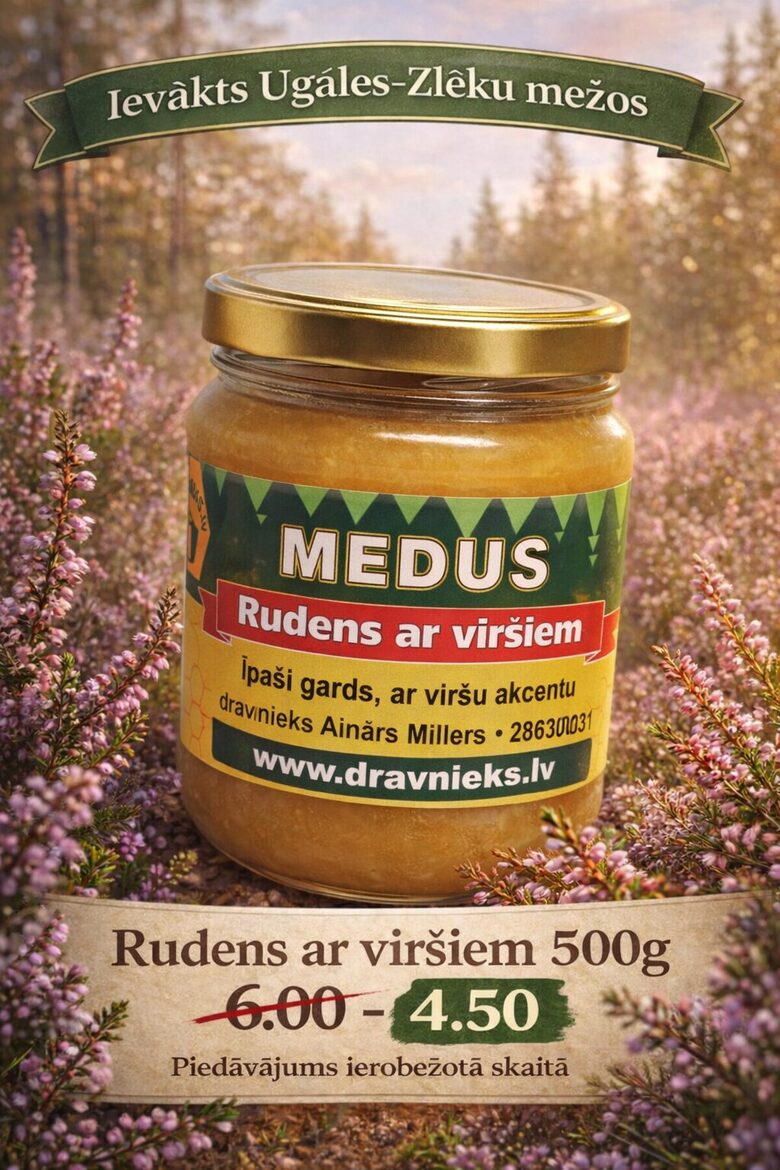 Vajadzētu uztaisīt atsevišķu etiķeti, bet nebija laika. Piedāvājumā ar Mežvidus medus uzlīmi, uz vāciņa - melleņu ziedu-izsvīduma, un burciņas aizmugurē uzlīme par melleņu ziedputekšņu saturu.